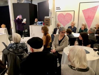 Board member Ying-Yueh Chuang introduced the NWCF Mayer Wosk Award, which this year was presented to two outstanding artists, Amelia Butcher and Wei Cheng. Both Amelia and Wei presented short talks about their practices, which emphasized their engagement with the material in poetic and highly personal ways. The evening concluded with the closing of the silent auction and conversation among the happy and satisfied guests.