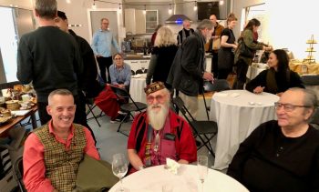 The North West Ceramics Foundation held their award ceremony, . . . That Pottery Thing. . . 2025, on December 4, at the Mayer Studio, 1000 Parker St, in Vancouver. Refreshments were provided by Noble Egg Catering run by fellow ceramicist Nicole Guillemin and featured a wide range of tasty finger food. Prosecco, wine, and beer were also available. Attendees included previous award-winners, donors, curators, and supporters. All were present to celebrate recipients of the NWCF Mayer Wosk Award of Excellence and two new awards, the Tam Irving Honorary Award of Recognition (“The Tam”) and the Celia Rice-Jones Legacy Award (“The Celia”). In addition to snacks and awards, attendees were privy to a silent auction of beautiful works by some of BC’s best ceramic artists, including works by the award recipients. A small table of mugs, plates, and decorative items from the collection of Sally Michener offered visitors inexpensive souvenirs of this beloved former teacher and artist.